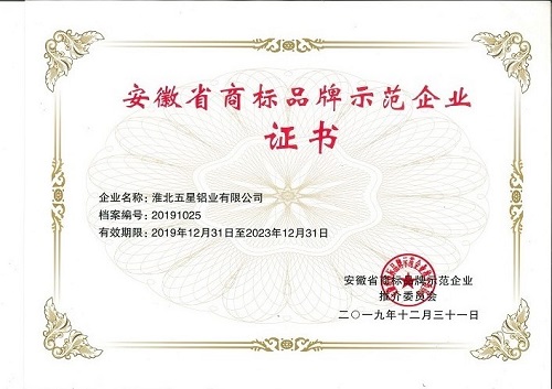 安徽省商標(biāo)品牌示范企業(yè)證書
